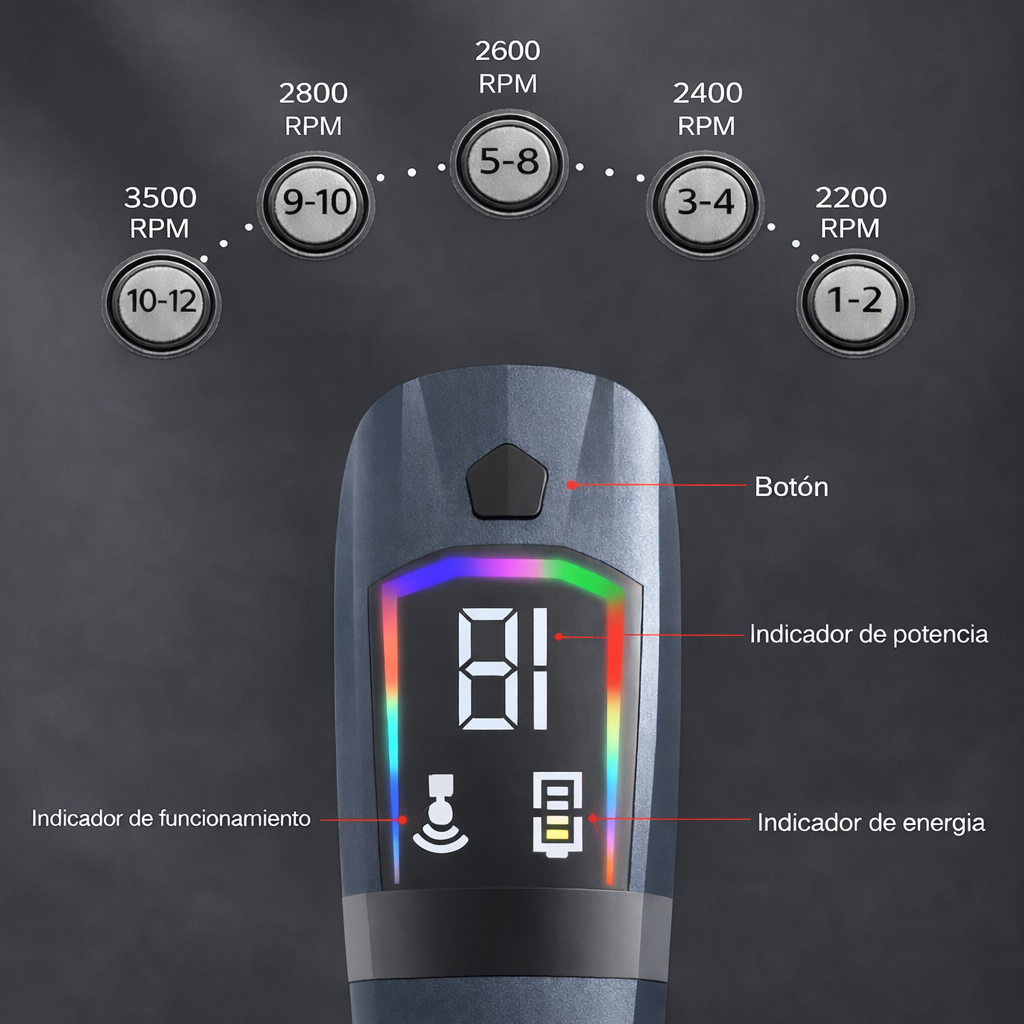 Equipada con un motor de alto rendimiento que alcanza hasta 3500 revoluciones por minuto, esta pistola ofrece un masaje profundo que ayuda a activar los músculos y liberar tensiones acumuladas.
